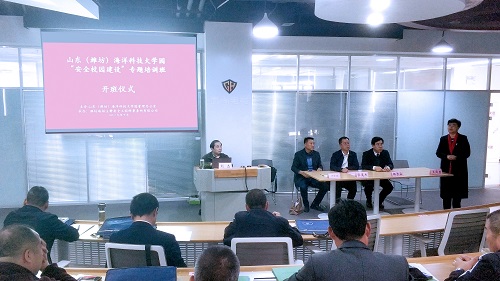 为全面提升山东(潍坊)海洋科技大学园各入驻院校的校园安全管理水平和防灾、减灾及救灾能力,提高各院校师生的安全专业素质及自我防护技能,10月28日至29日,山东(潍坊)海洋科技大学园管理办公室在金年会官方体育登录入口举办“安全校园建设”专题培训。滨海区社会事业局党委书记张英杰,,山东(潍坊)公共实训中心主任邵长山,金年会官方体育登录入口党委委员、常务副总经许京波等出席开班仪式。